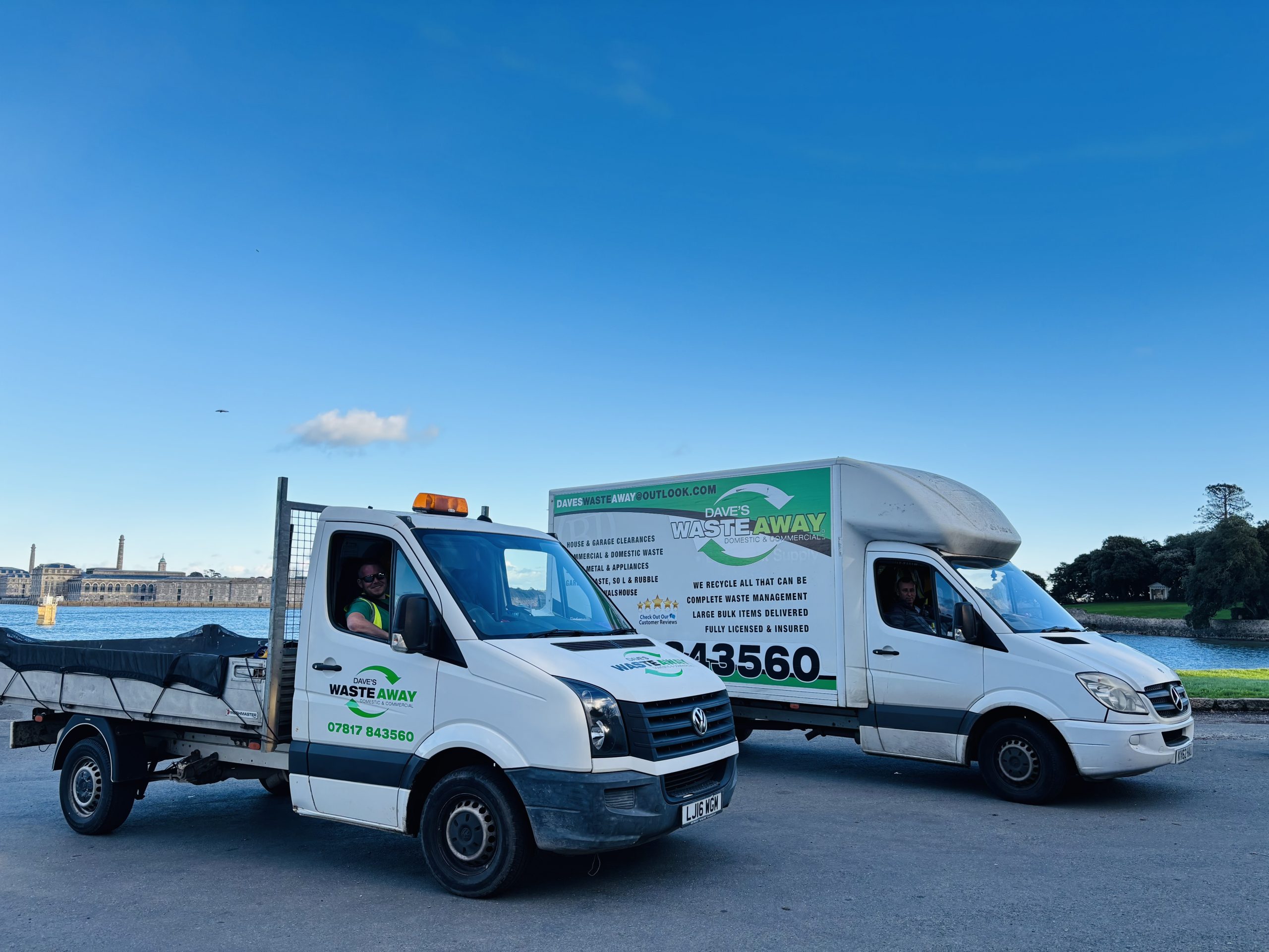 We’re local! Our team covers a 15-mile radius around Plymouth, bringing professional waste clearance to homes and businesses from Saltash to South Brent. Not sure if you’re in our zone? Get in touch with our team to find out more.